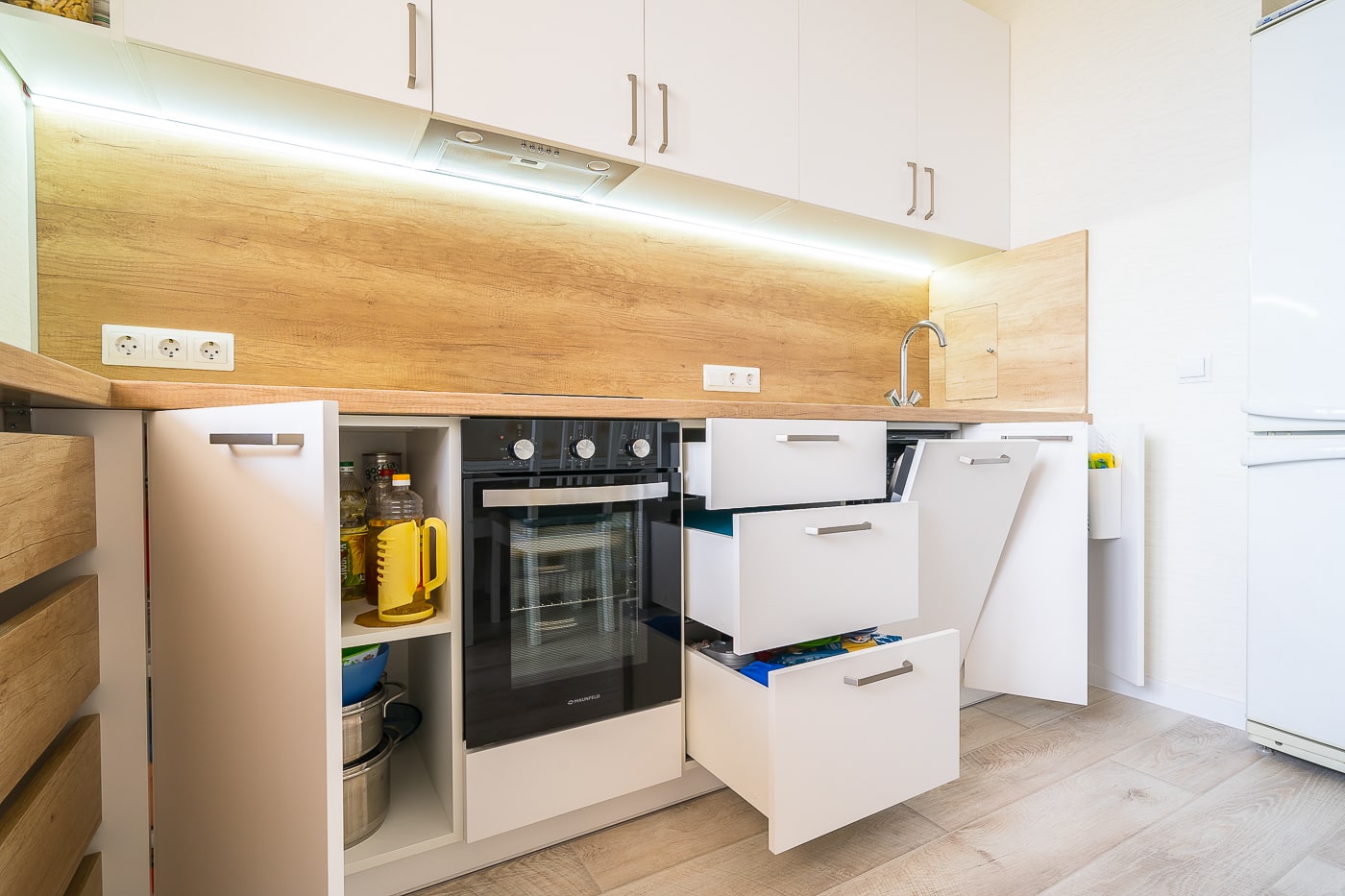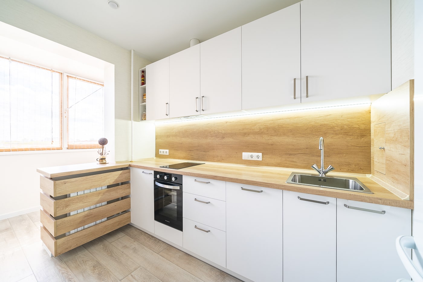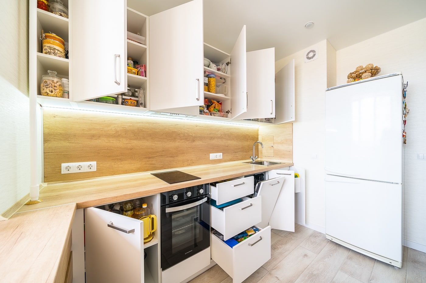 Разработка эргономичного проекта кухни вместе с профессионалом, подбор фурнитуры и материалов. Окончательный расчет стоимости.