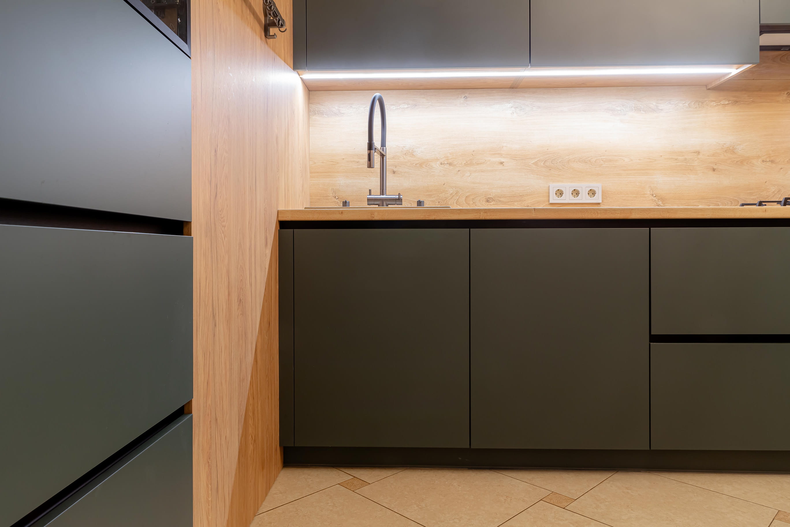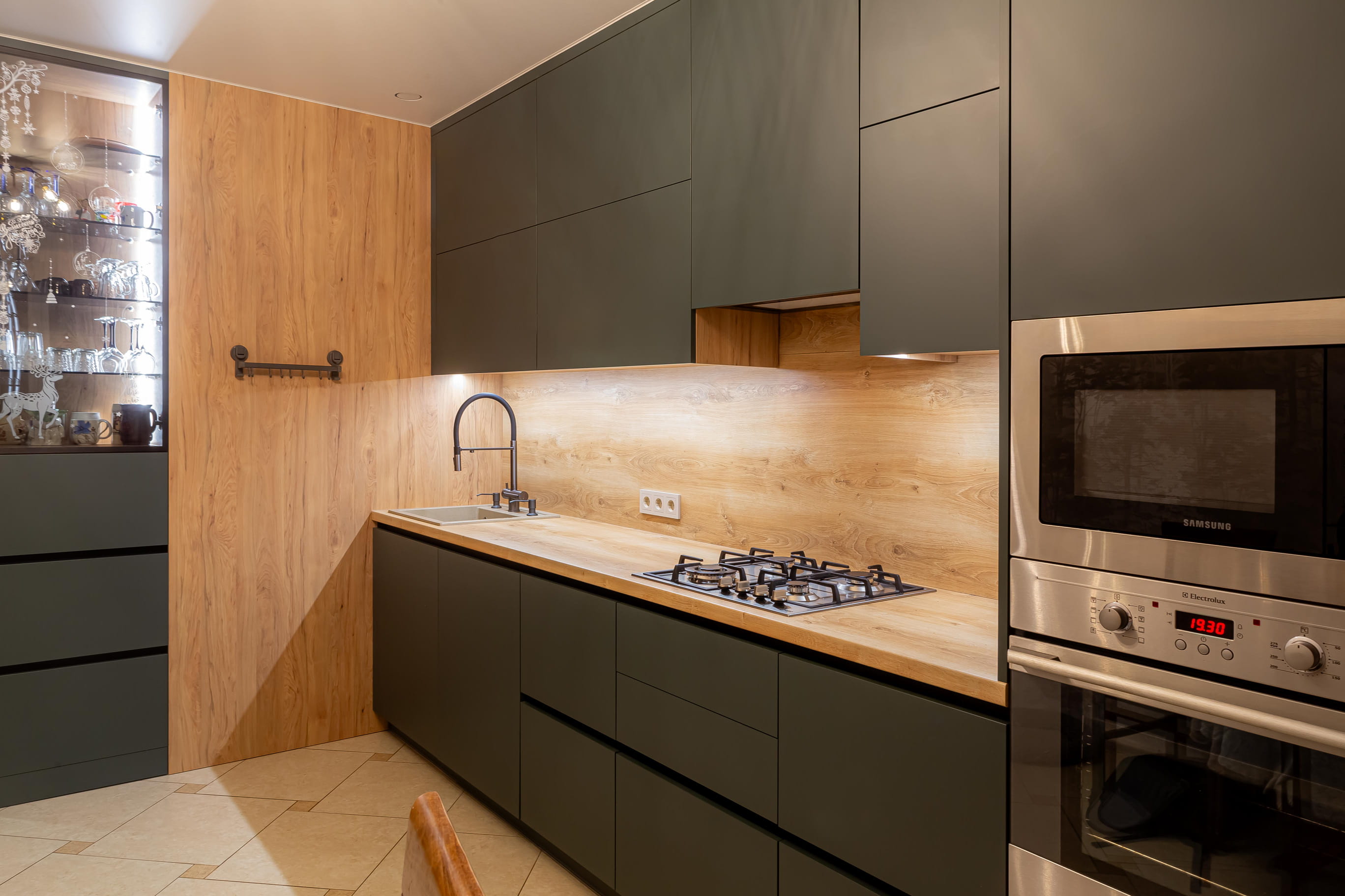 Разработка эргономичного проекта кухни вместе с профессионалом, подбор фурнитуры и материалов. Окончательный расчет стоимости.